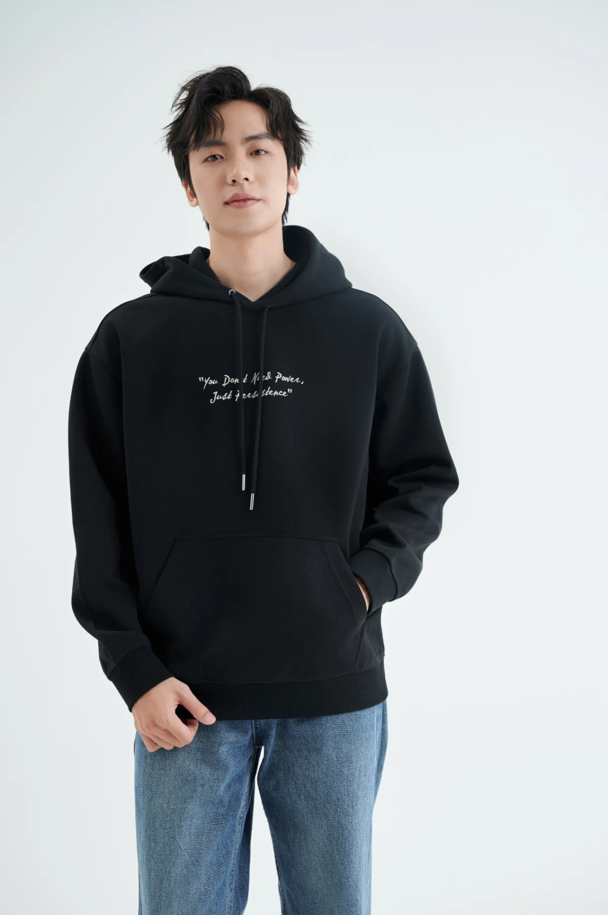 ►Thiết kế áo hoodie nam cổ tròn với form classic kết hợp hình in giữa ngực