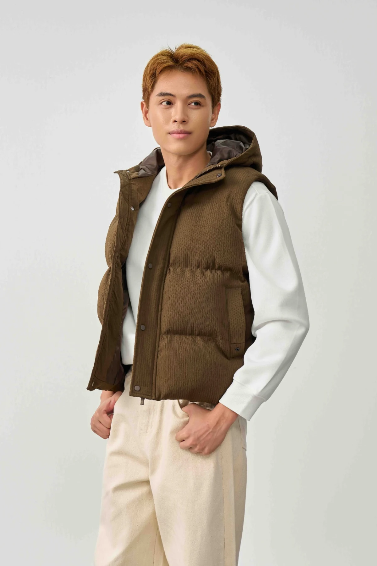 Áo nổi bật với sự hoàn thiện tỉ mỉ trong từng chi tiết, từ đường may chắc chắn đến cấu trúc nhồi bông nhẹ nhưng có khả năng giữ ấm ổn định. Nhờ giữ form tốt, chiếc gile luôn mang đến vẻ ngoài gọn gàng và chỉn chu dù bạn mặc trong nhiều giờ hay kết hợp với nhiều lớp trang phục khác nhau.